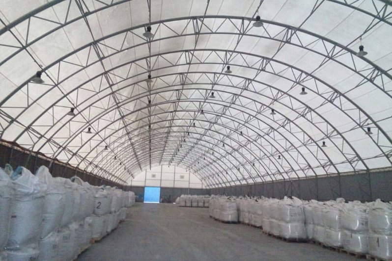 Конструкция тентовых арочных складов позволяет создавать оптимальный микроклимат для чувствительных к влаге товаров.