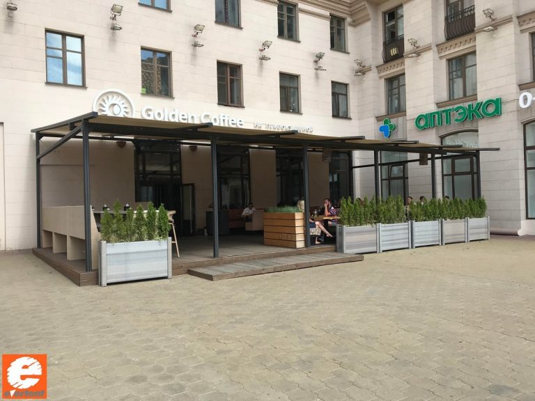 Производство тентовых ангаров, веранд и террас для кафе, пергол в Беларуси.