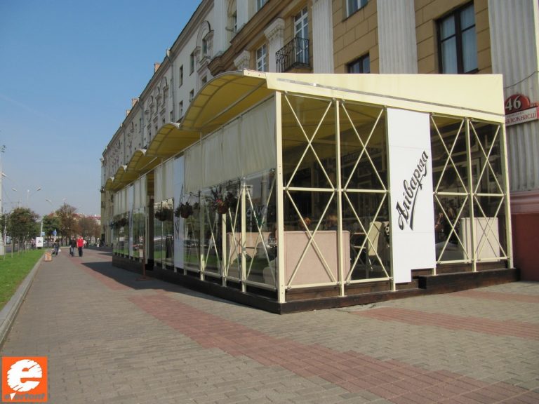 Производство тентовых ангаров, веранд и террас для кафе, пергол в Беларуси.