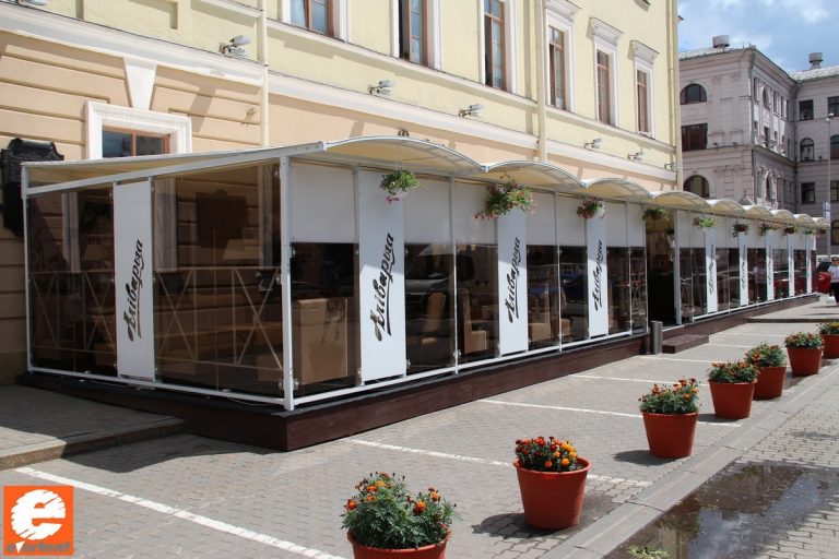 Производство тентовых ангаров, веранд и террас для кафе, пергол в Беларуси.