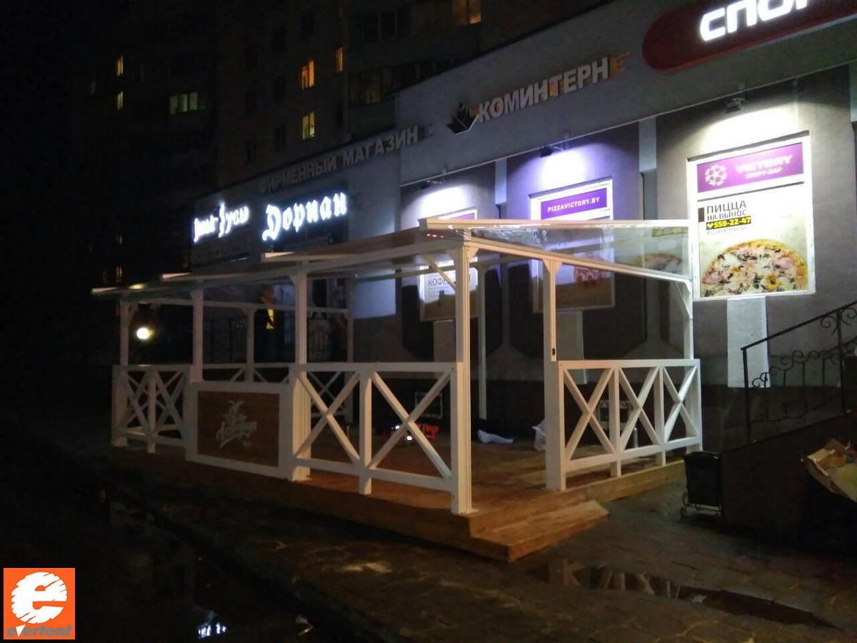 Производство тентовых ангаров, веранд и террас для кафе, пергол в Беларуси.