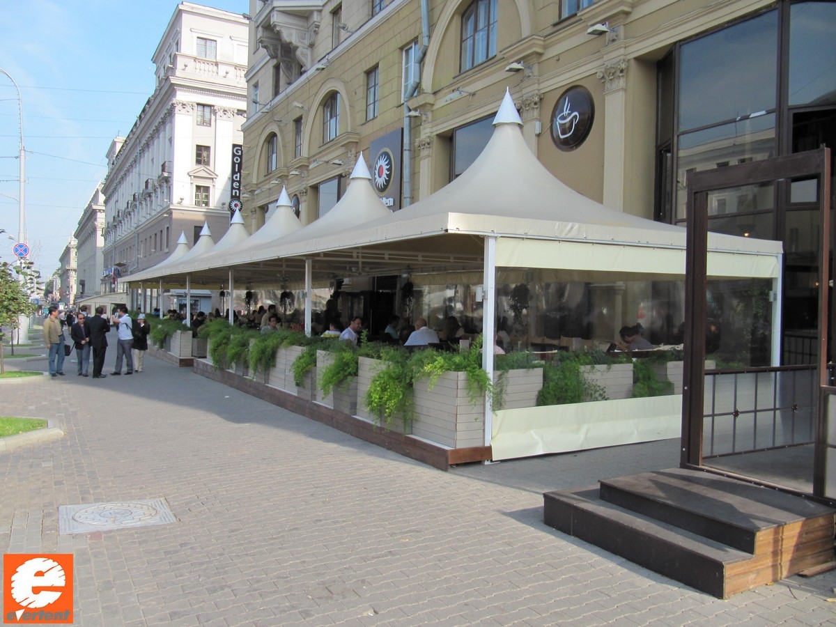 Производство тентовых ангаров, веранд и террас для кафе, пергол в Беларуси.