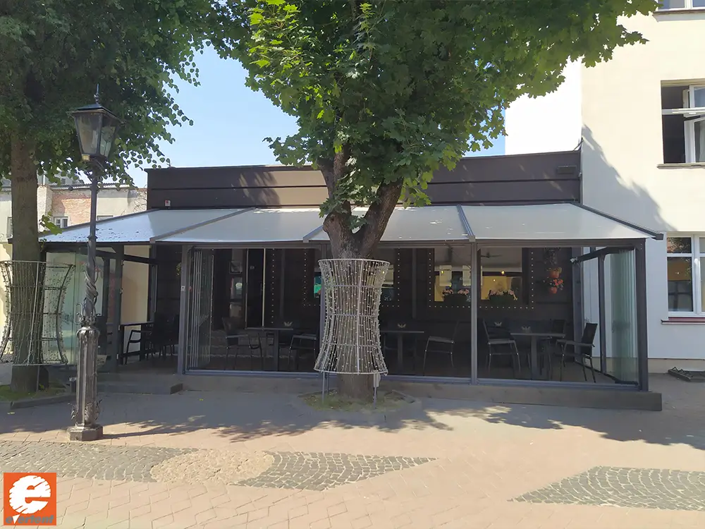 Производство тентовых ангаров, веранд и террас для кафе, пергол в Беларуси.