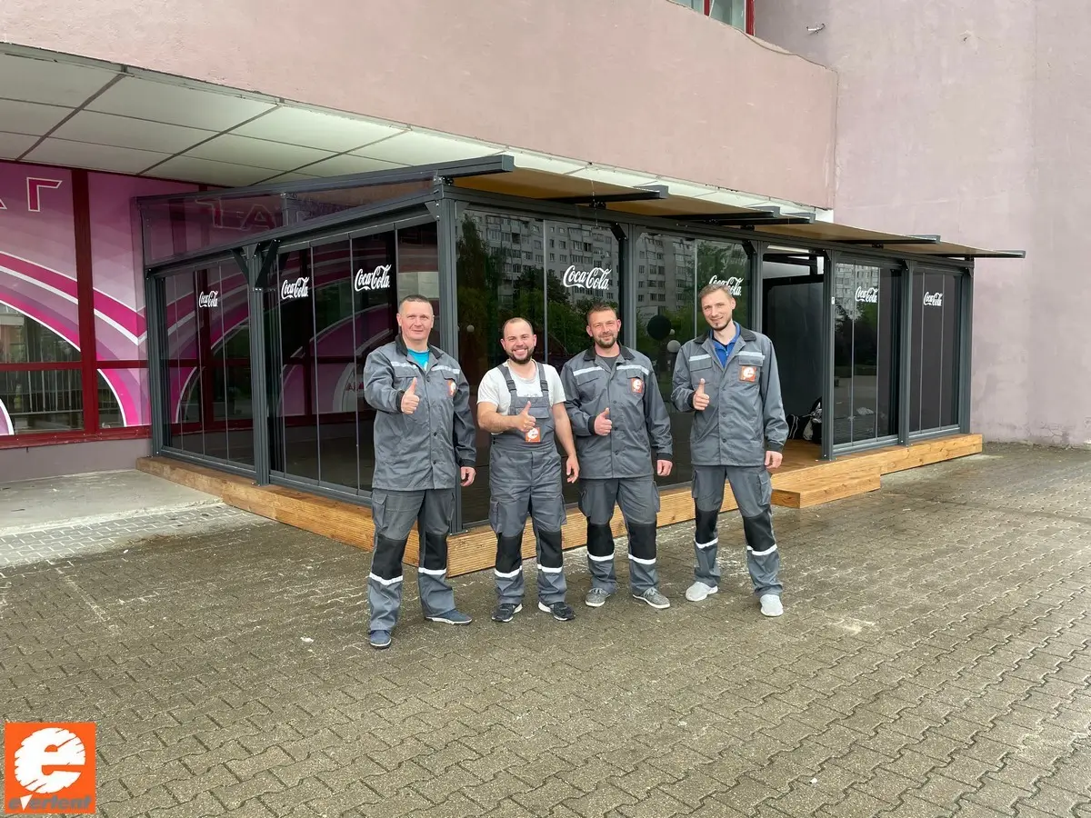 Производство тентовых ангаров, веранд и террас для кафе, пергол в Беларуси.