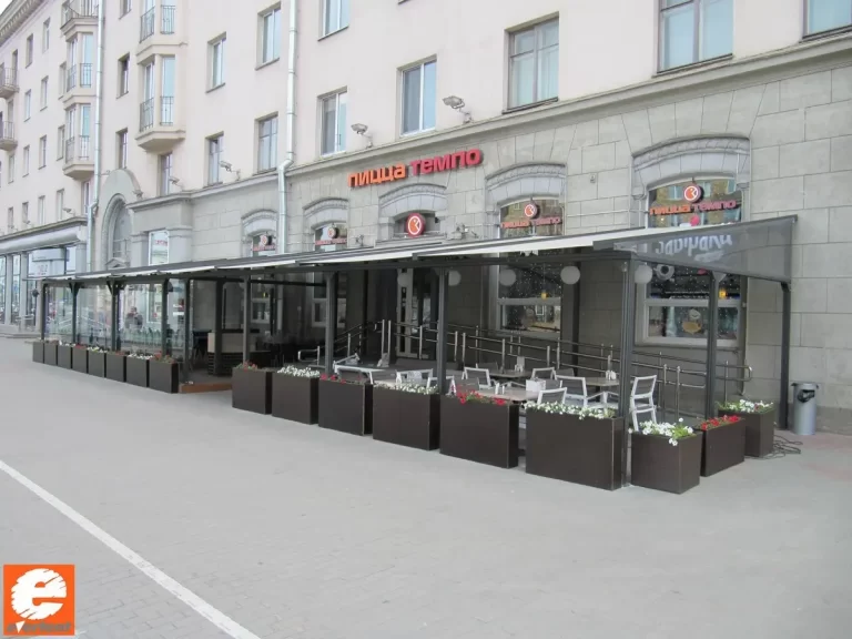 Производство тентовых ангаров, веранд и террас для кафе, пергол в Беларуси.