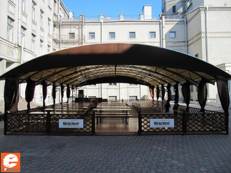 Производство тентовых ангаров, веранд и террас для кафе, пергол в Беларуси.
