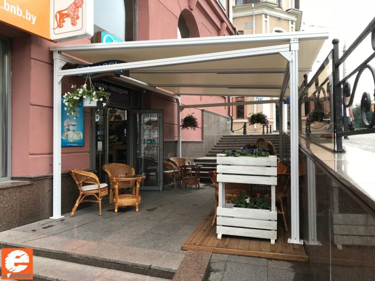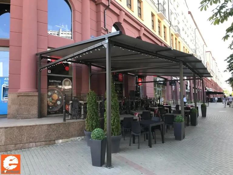 Производство тентовых ангаров, веранд и террас для кафе, пергол в Беларуси.
