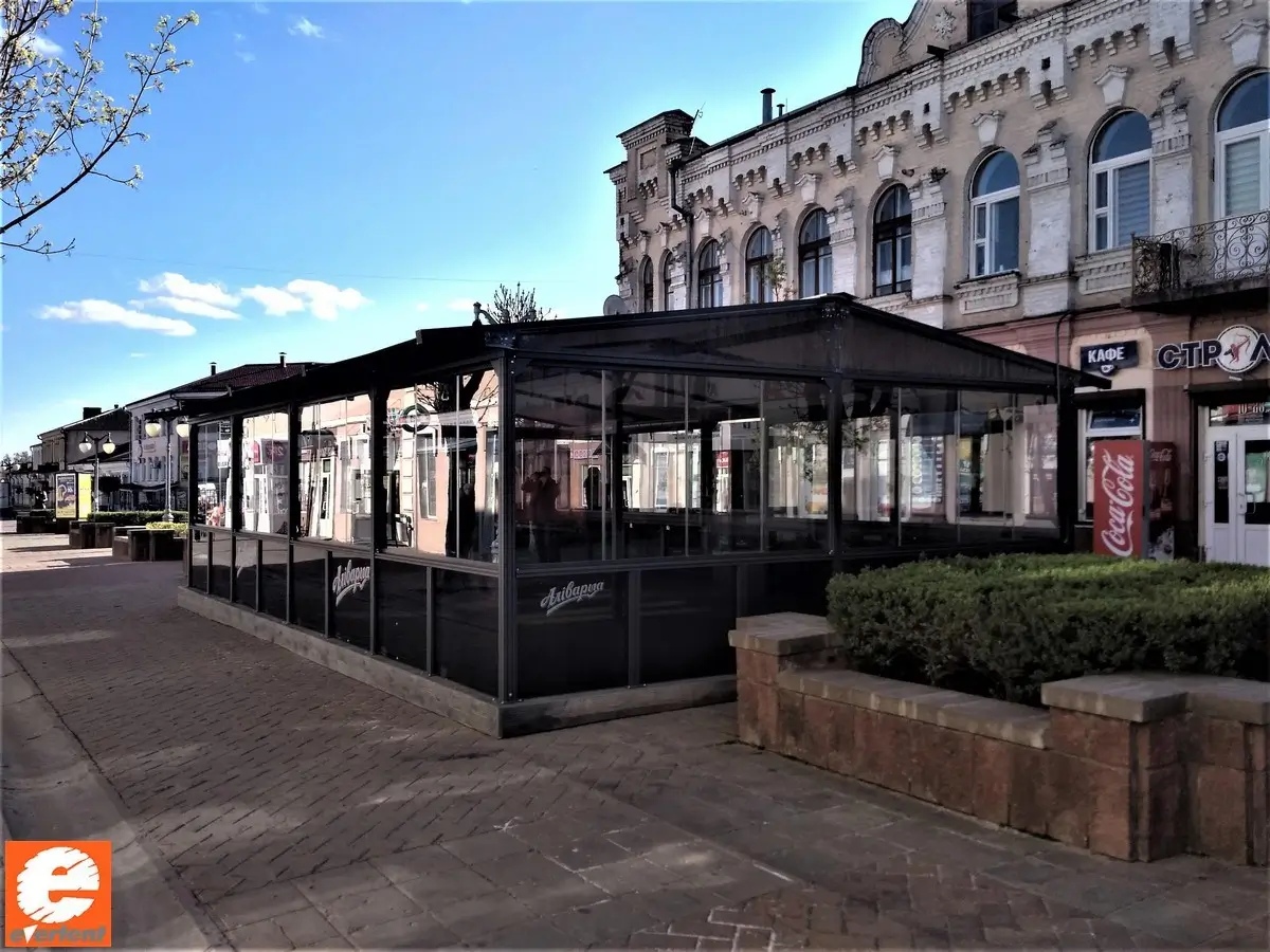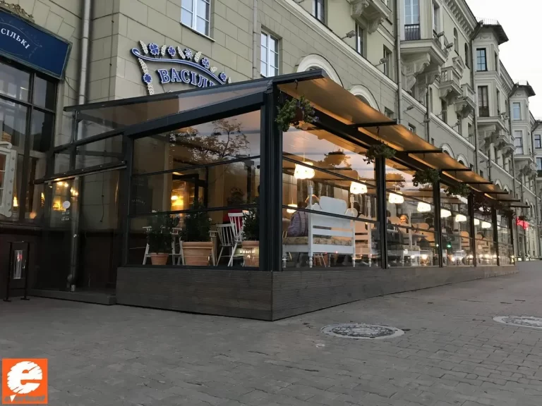 Производство тентовых ангаров, веранд и террас для кафе, пергол в Беларуси.