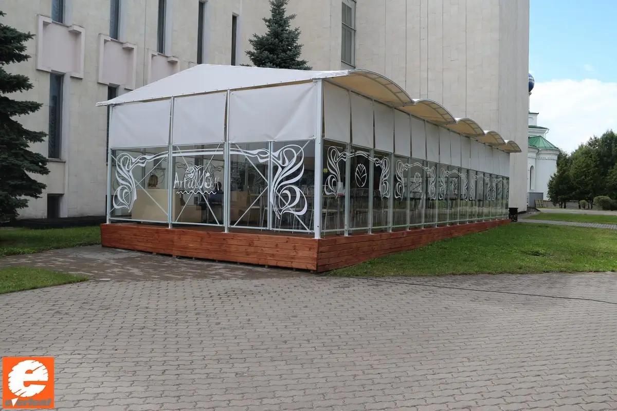 Производство тентовых ангаров, веранд и террас для кафе, пергол в Беларуси.